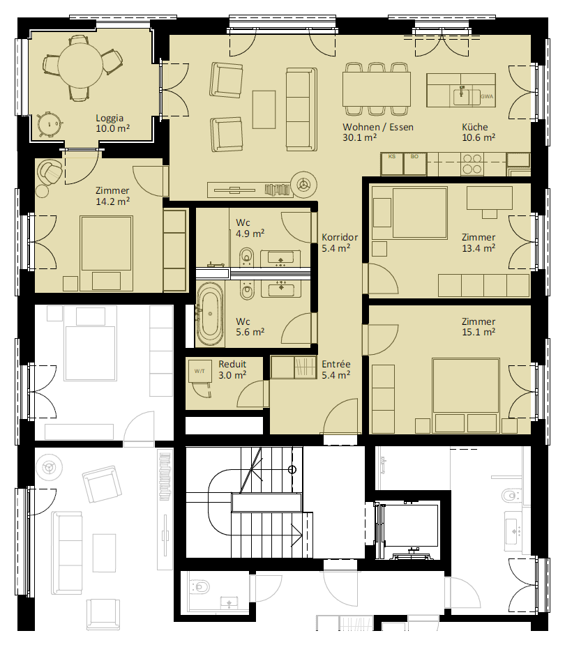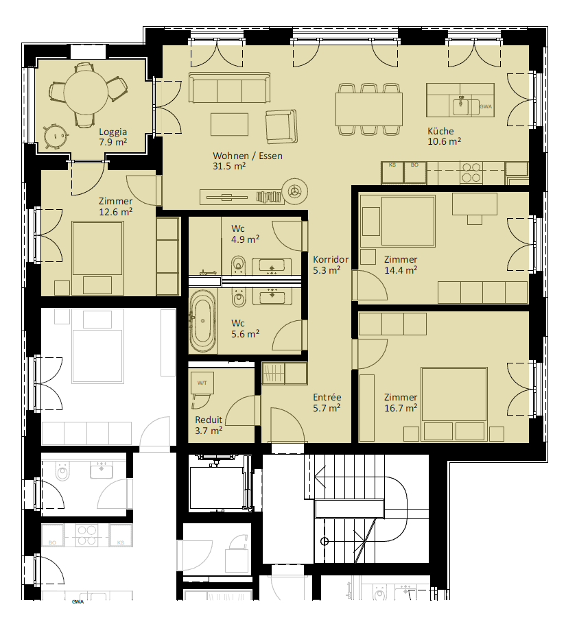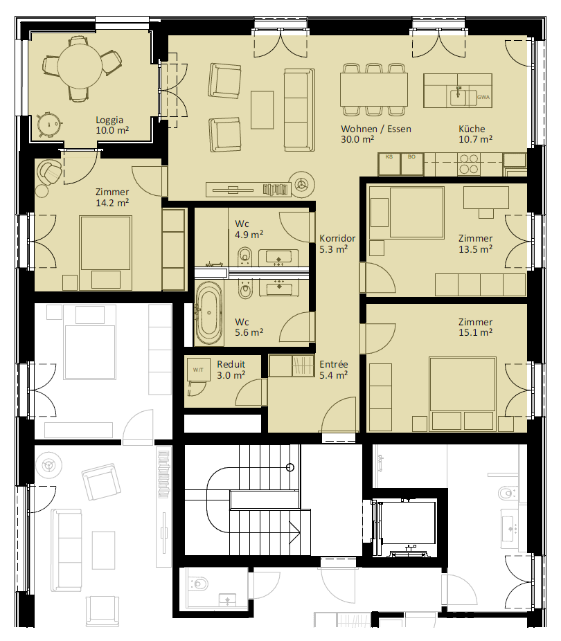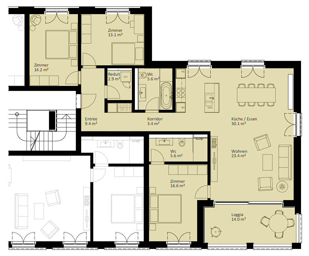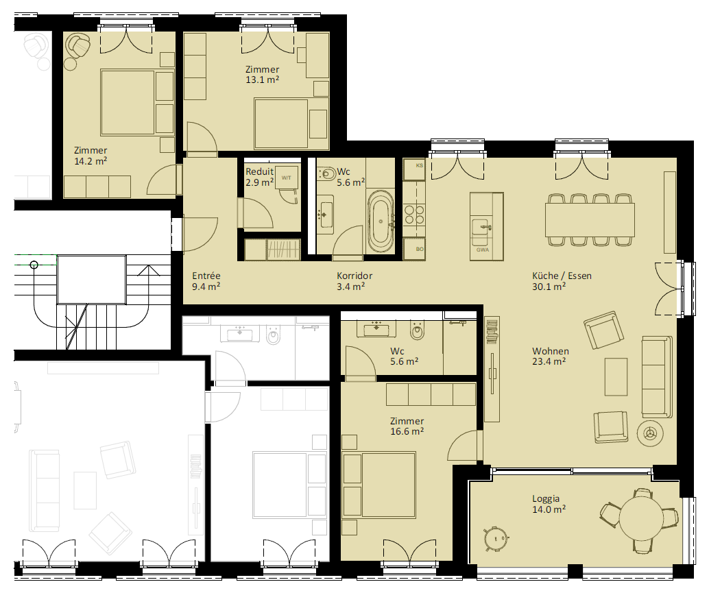 | 6.2.2 | 4.5 | 2.OG | südost | 124.3 m2 | CHF 745'000 | |||