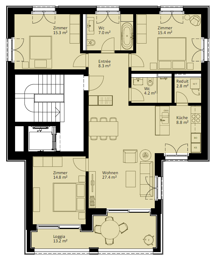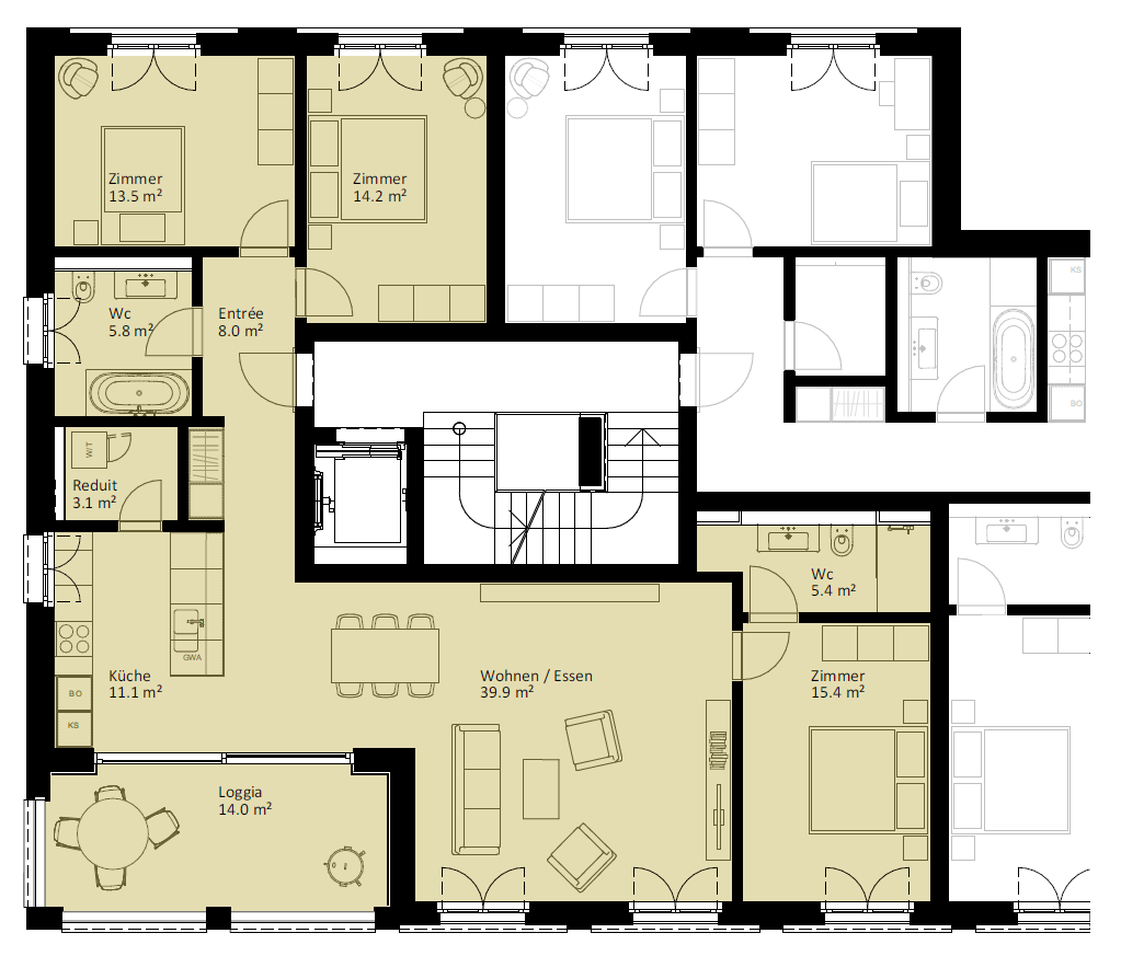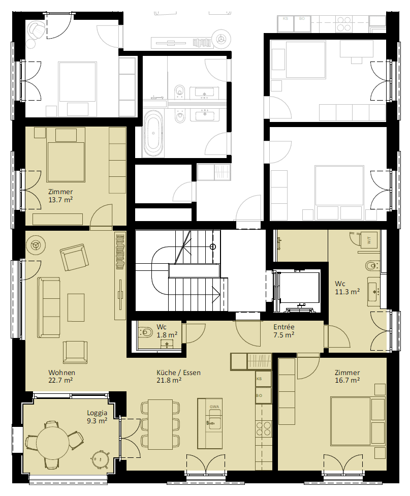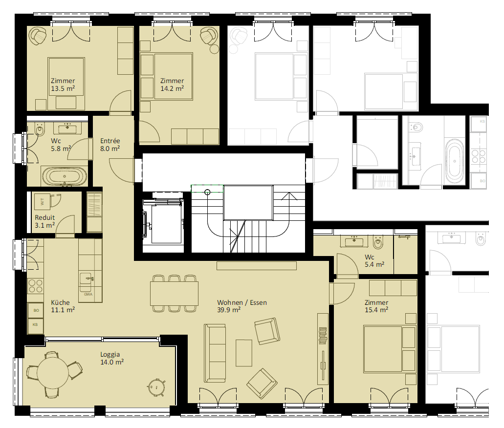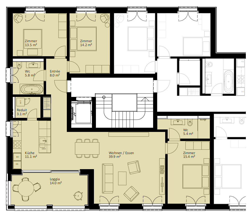 | 6.2.2 | 4.5 | 2.OG | südost | 124.3 m2 | CHF 745'000 | |||